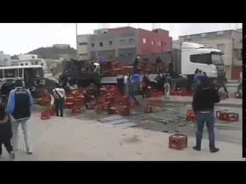 إنقلاب شاحنة خمر، والشباب يستغل الفرصة