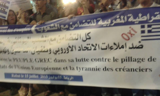 تظاهر مئات الأشخاص أمس الأربعاء 8 يوليوز أمام مقر البرلمان المغربي بالرباط، تأييدا لقرار اليونانيين رفض إجراءات التقشف، المفروضة من قبل المؤسسات الدائنة،