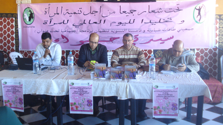لقد آن للدراسات النقدية والقراءات الشعرية واحتفالات توقيع الدواوين أن تتخلى عن صرامتها النظرية والتخاطب النخبوية والذهاب الى استباحة معيارية الصالونات، إذ ما جدوى الثقافة إذا لم يغامر النقاد والشعراء في اجتراح فضاءات غير معهودة، بل وغير متوقعة، وينتزعون صمت المعاني المبدعة من كل الفئات الاجتماعية والثقافية، ويعتصرون الشعر من النثر الكلام من الصمت، ويستخرجون الجمال من الدهشة، لفئات اجتماعية غفيرة حجت يوم الأحد 6 مارس 2016 لقاعة عرض بإحدى محطات الوقود بمدينة ورزازات لمعانقة الشعر والشعراء والنقد والنقاد في إطار احتفال جمعية طاقات شبابية وجمعية تامسنا النسوية لتنمية المرأة باليوم العالمي للمرأة.