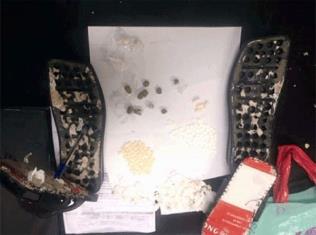 مدسوسة في حذاء مفخخ، حصل على طريقة صنعها من خلال بعض مواقع الشبكة العنكبوتية.