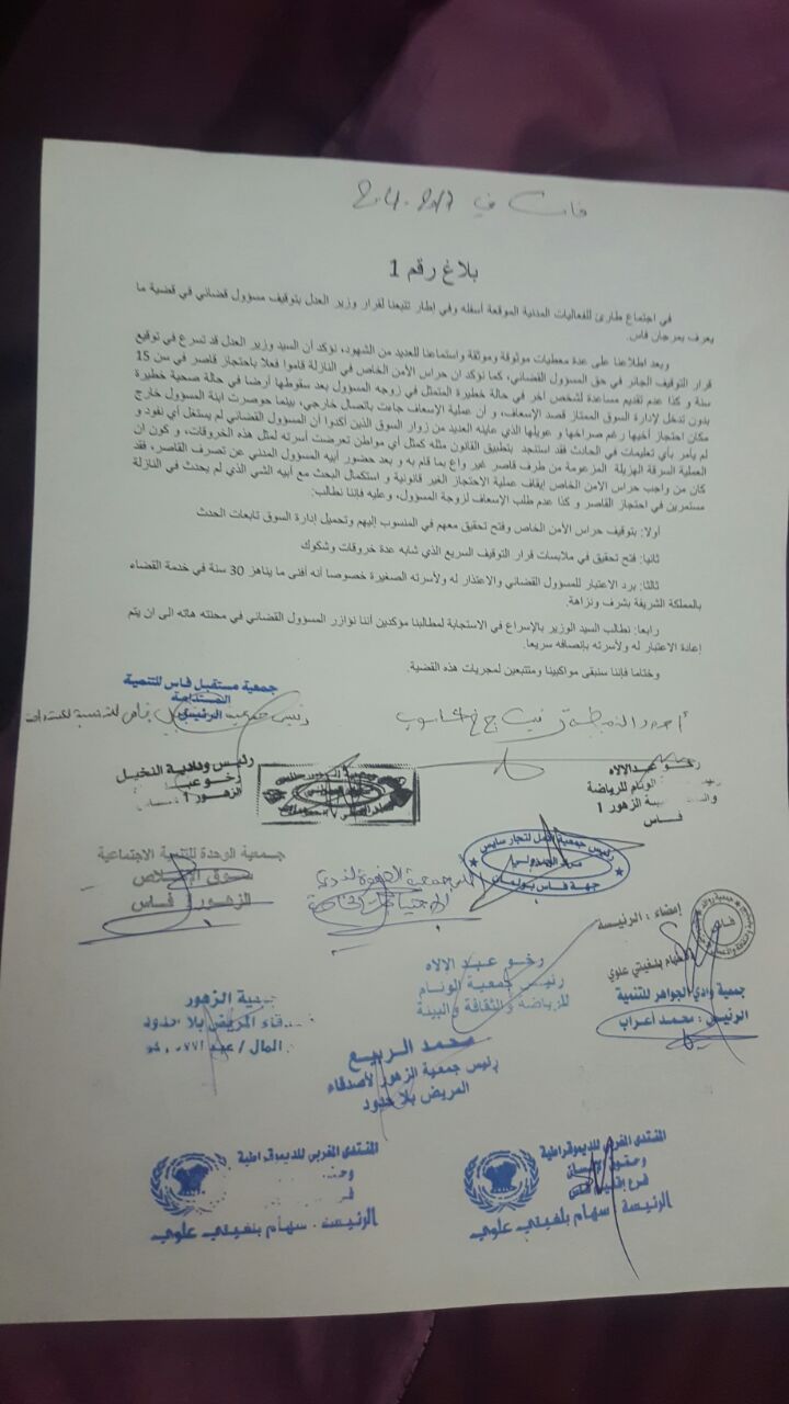 1 - مراسلة وزير العدل لإعطاء التوضيحات اللازمة حول ظروف و حيثيات قرار الإيقاف الذي لا يتناسب و وقائع هذا الحادث.