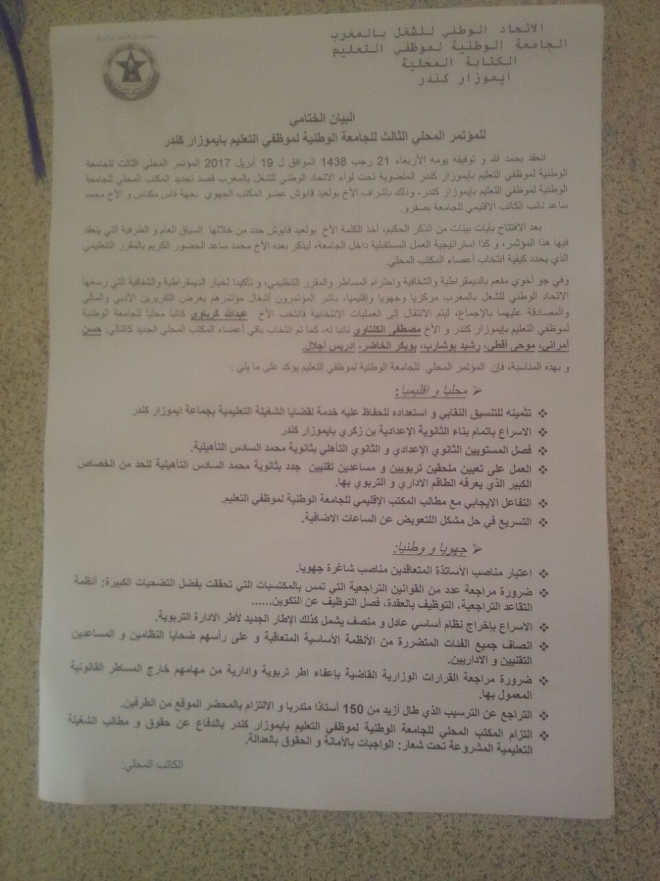 . لينتخب المؤتمرون مكتبا جديدا، بقيادة جديدة تتمثل في الاستاذ "عبد الله كرباوي"،