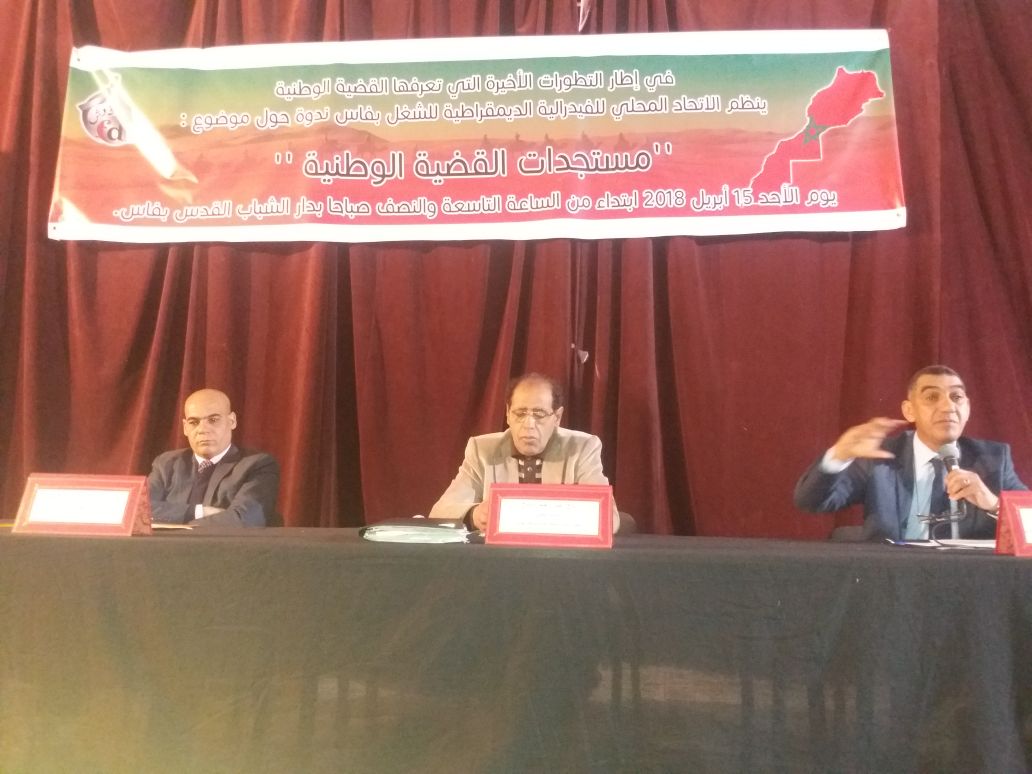 للشغل بفاس، ندوة حول موضوع : ''مستجدات القضية الوطنية '' وذلك يوم الأحد 15 أبريل