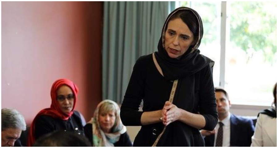 أرديرن، وقد ظهرت رئيسة الوزراء وهي تضع غطاءا على رأسها على شكل الحجاب الاسلامي.